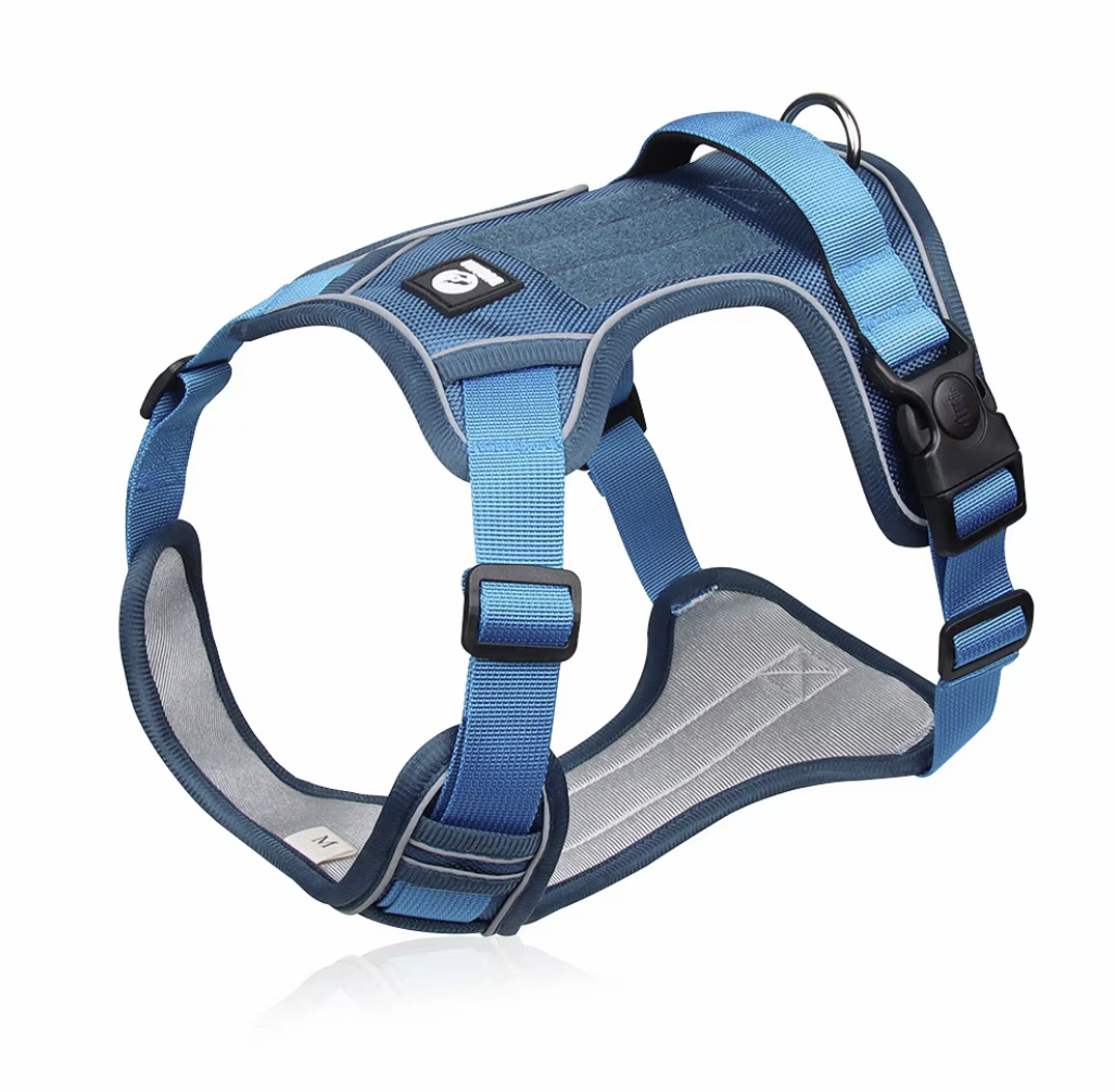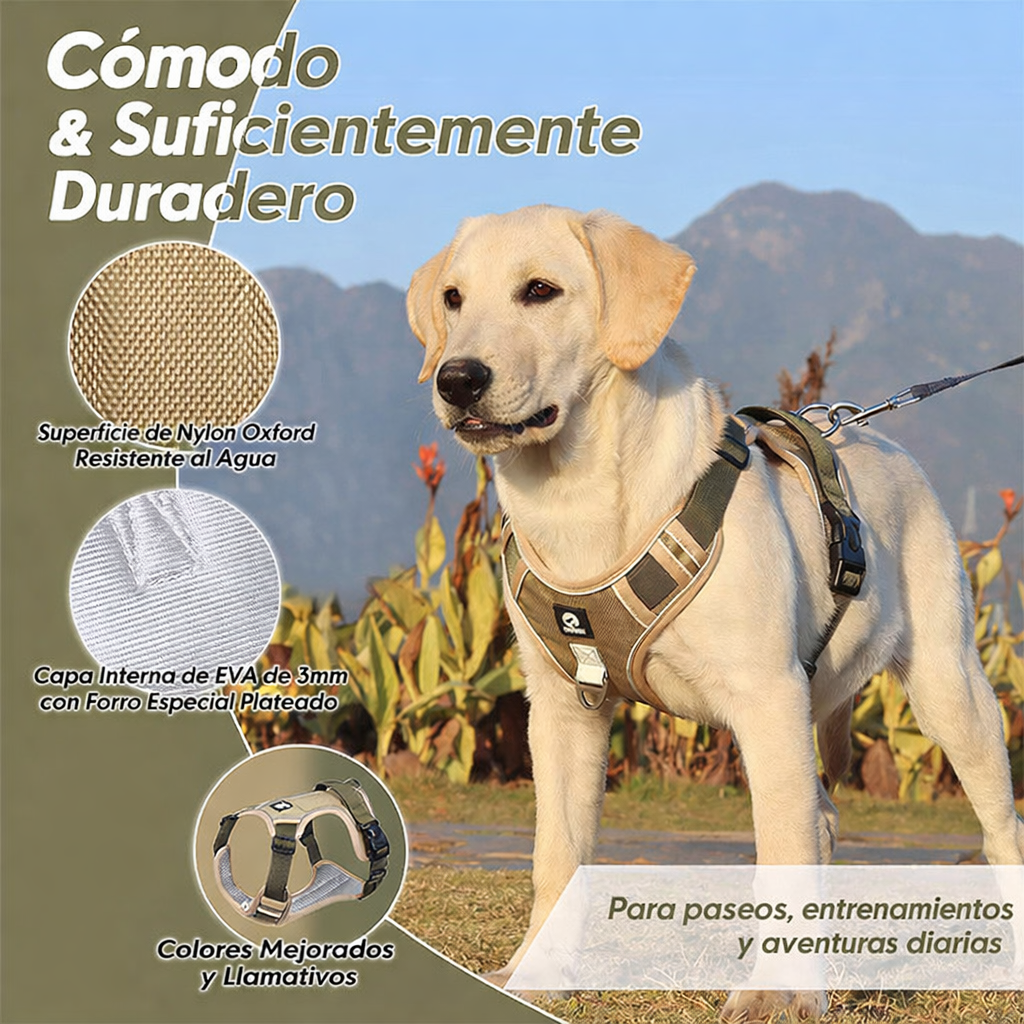Diseño reforzado que distribuye la presión y mejora el control sin incomodar al perro.